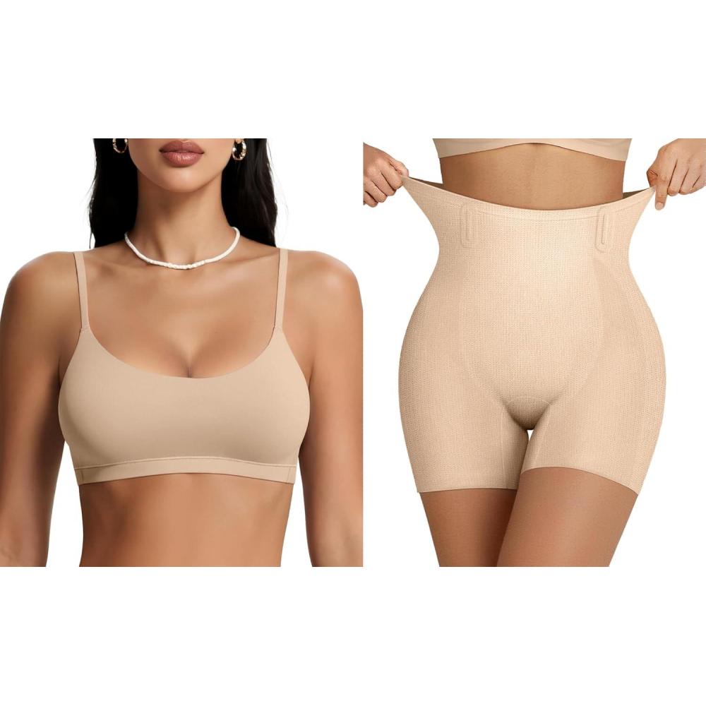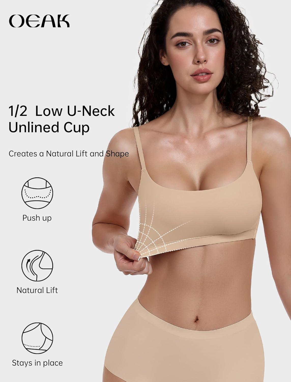 OEAK Women Tummy Control Shapewear Nude S+Comfort Cami Bra Seamless Unlined Bralettes Beige S