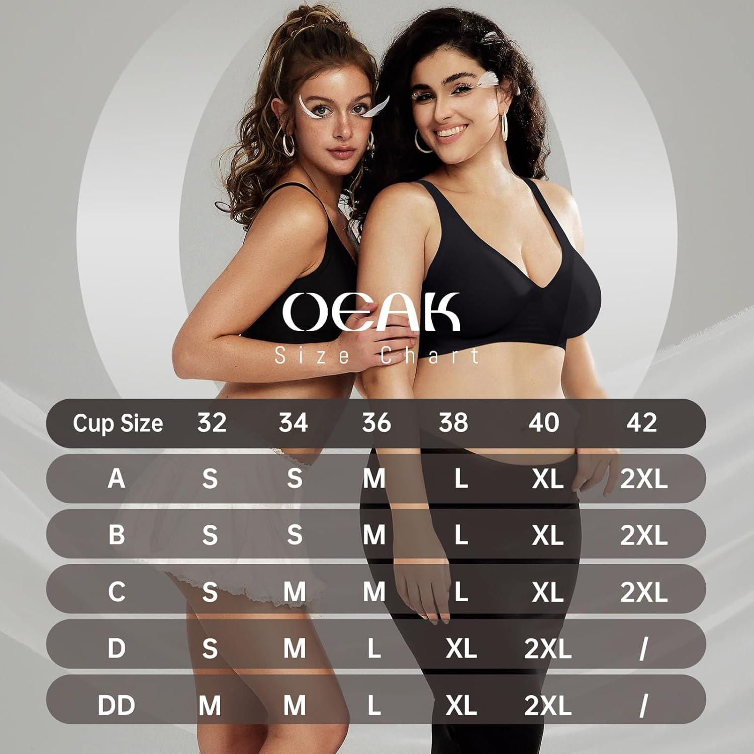 OEAK Womens Deep V Bras Comfortable Bras Support Push Up Bralettes Strapless Bandeau Bra Non Slip Bras Black + Black M