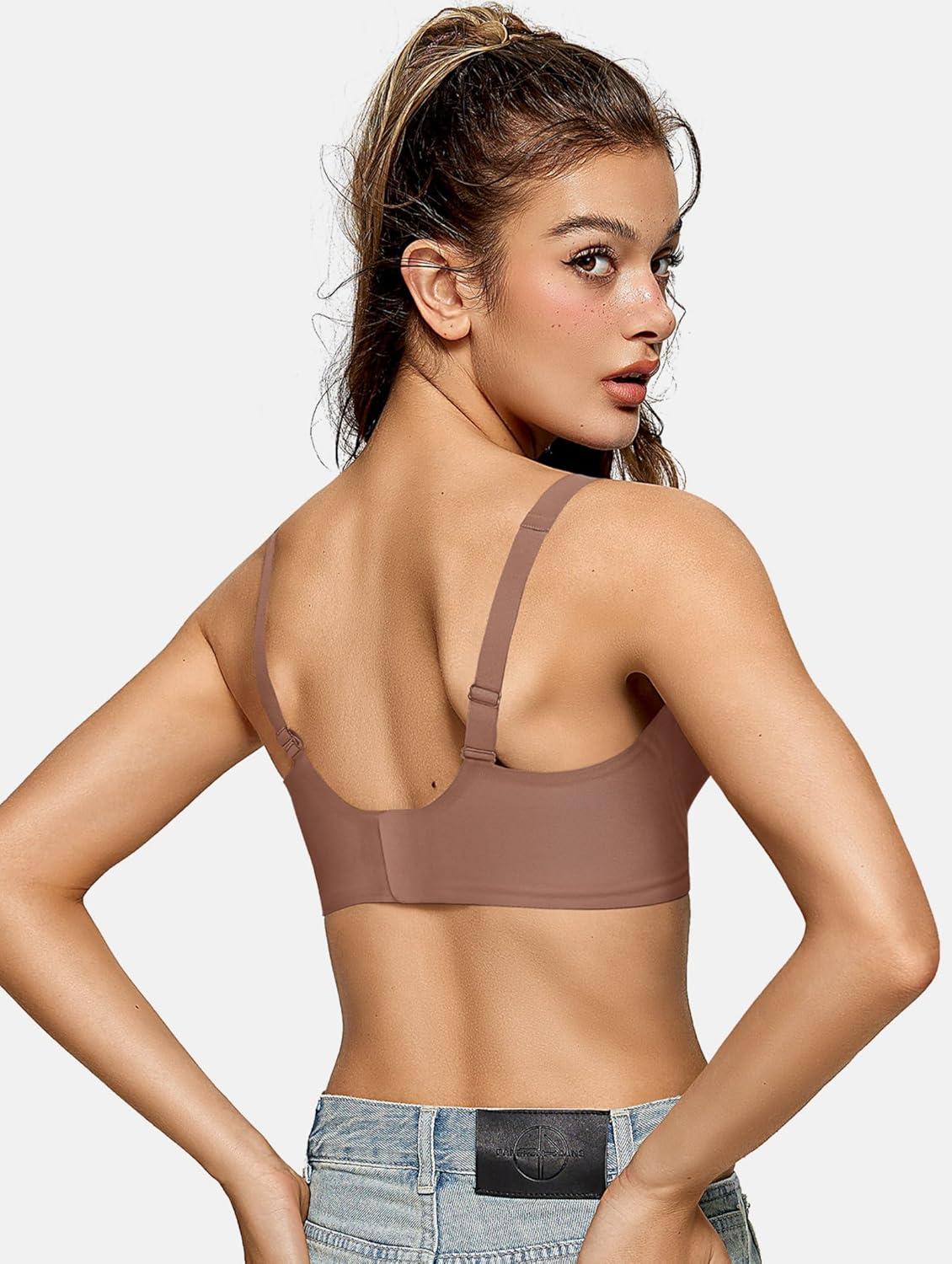 OEAK Womens Deep V Bras Wireless Bras Coffee & Tummy Control Shapewear for Women Seamless Nude XL